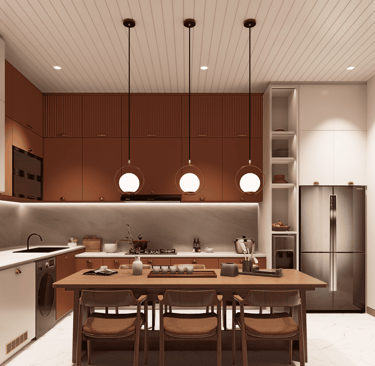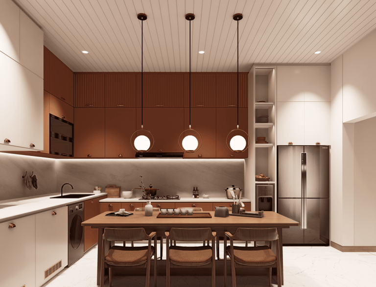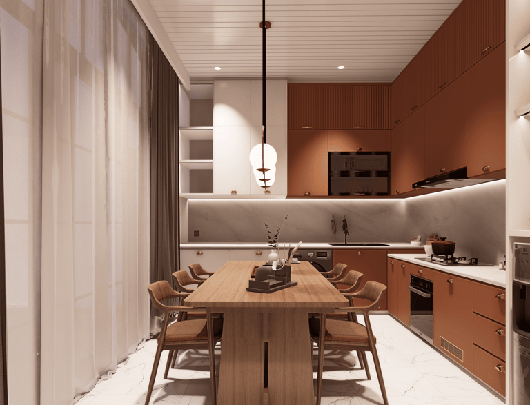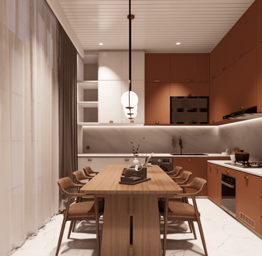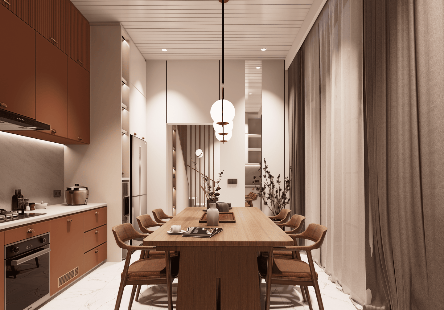 Dapur lengkap dengan kitchen set tepat di sisi meja makan